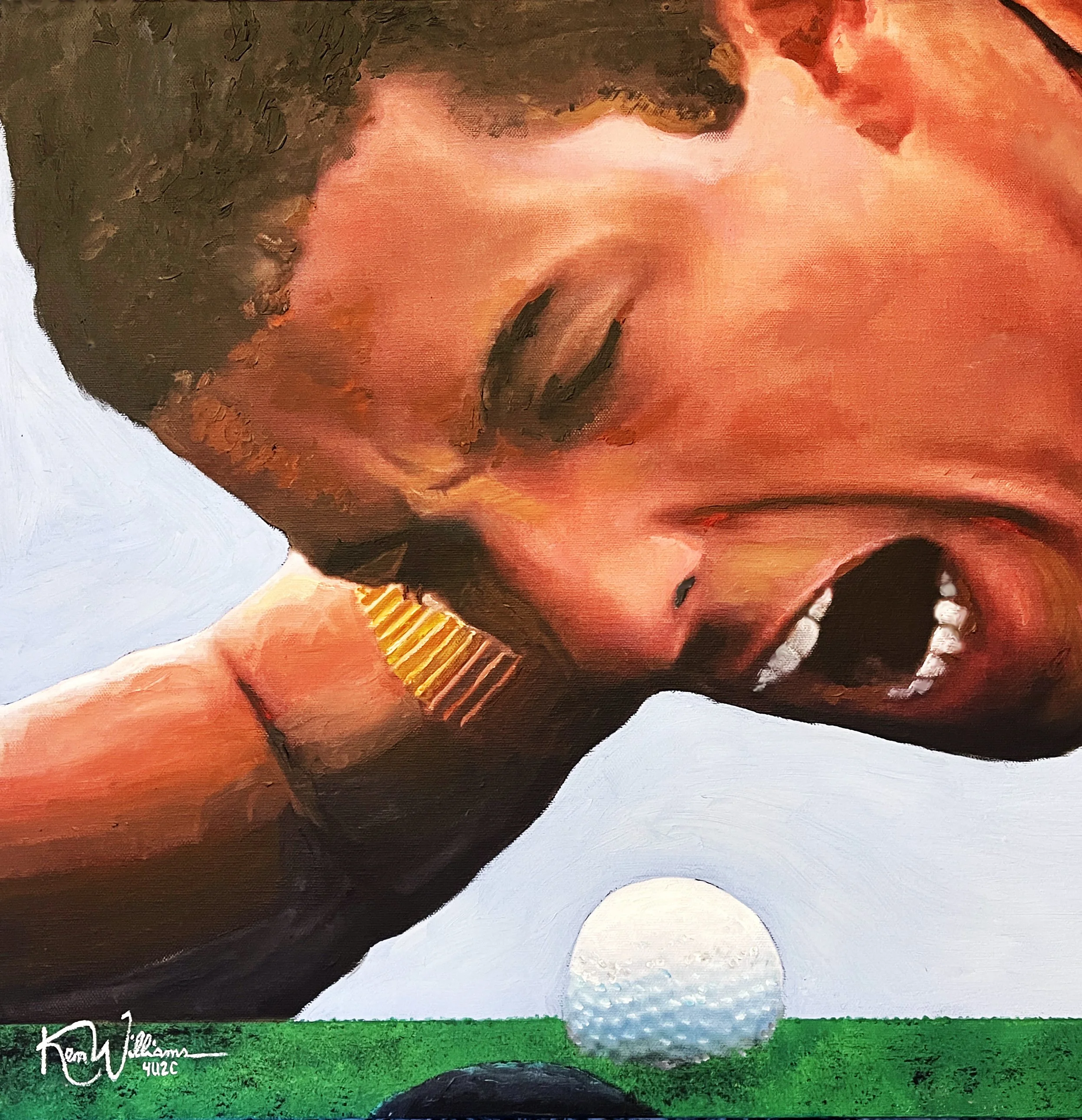 Oil on canvas, Framed size 34” x 34”. 400 individual painted squares forms this 1 large image.